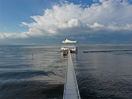 采用高效可調(diào)式渦井取藻、藍(lán)藻囊團(tuán)破壁、一體化二級強(qiáng)化氣浮等核心技術(shù),岸上站點(diǎn)藻水分離系統(tǒng)集成了藍(lán)藻打撈、脫氣沉降、氣浮分離、脫水等多個(gè)環(huán)節(jié)的技術(shù)和設(shè)備,形成了可規(guī)模化和工廠化處理藍(lán)藻的基站。適用于藍(lán)藻水華長期規(guī)律性、大范圍聚集區(qū)域的常態(tài)化應(yīng)急處置。